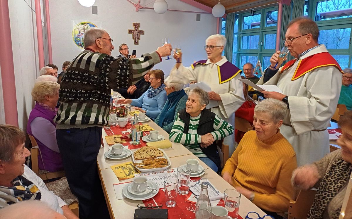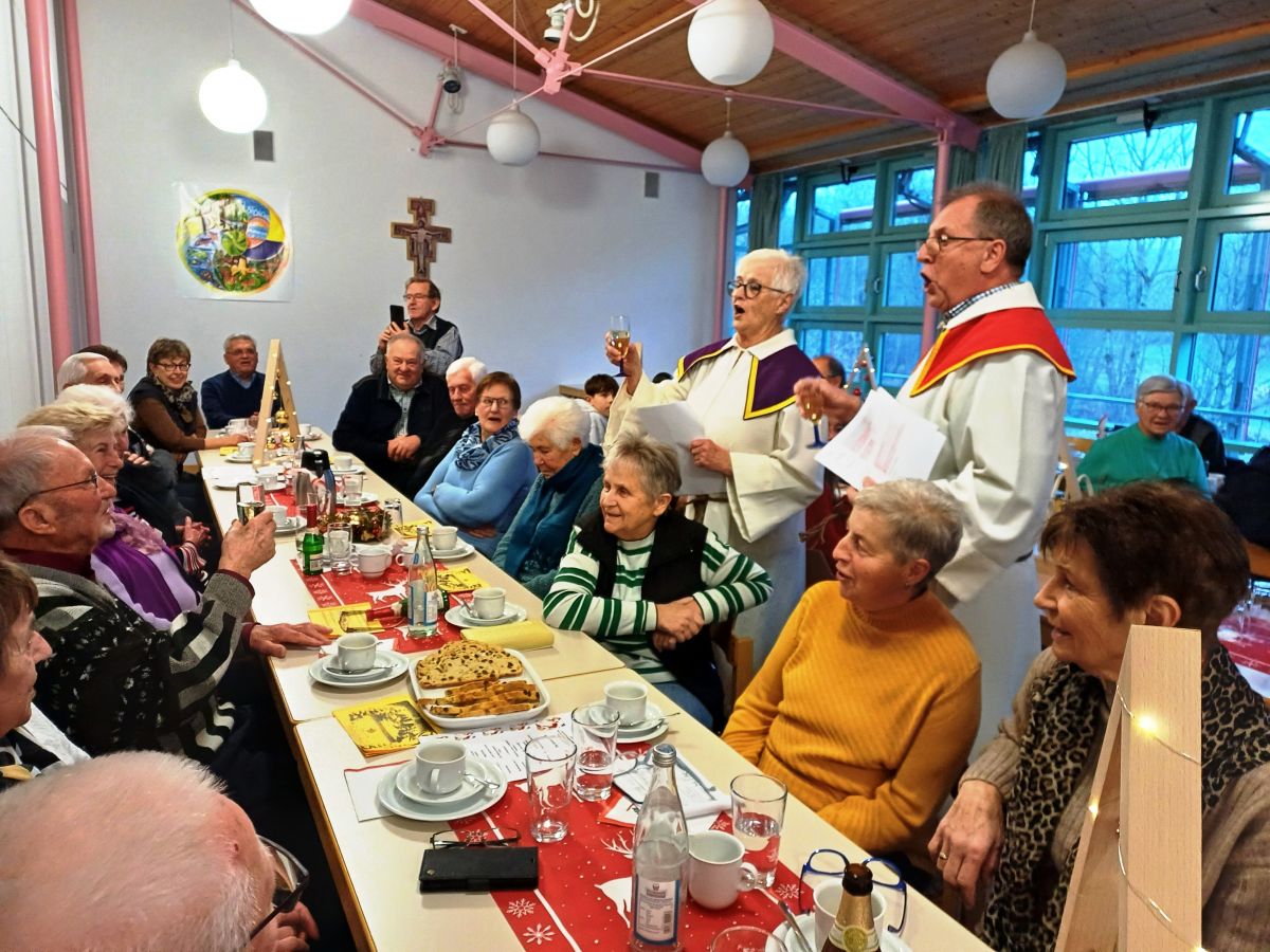 „ Das alte Jahr geht allmählich zu Ende, so möchte ich uns allen noch einmal bewusst im Sinne von Miteinander und Füreinander ein paar schöne Stunden wünschen“ , so Ortsvorsitzender Manfred Tölzer bei der Begrüßung der rund 50 Mitglieder und Gäste. Mit "Gedanken zum Advent“ läutete er den besinnlichen Teil der Adventsfeier ein. Im Anschluss daran lenkte Peter Zeitler mit der Geschichte „Das Weihnachtsessen“ auf den „fröhlichen Advent" über. Aufmerksame Zuhörer fand Elisabeth Tamler für die lustige Weihnachtsge-schichte „Dresscode unterm Weihnachtsbaum“. Zweifelsohne ein Höhepunkt und gleichzeitig einen Premiere war der Auftritt von Elisabeth und Peter, die mit passender Mimik und Gestik untermalt eine „Adventsmesse“ der etwas anderen Art zelebrierten. Mit dem Lied "Lasst uns froh und munter sein" wartete man nachfolgend auf den Nikolaus. Unter der roten Kutte steckte 3. Bürgermeister Matthias Böhner. Er ließ mit kurzen, humorvollen Sätzen das Vereinsleben des vergangenen Jahres Revue passieren. Anschließend überreichte der Nikolaus, unterstützt von seinen drei Engeln, an alle Mitglieder und Gäste eine kleine adventliche Aufmerksamkeit.