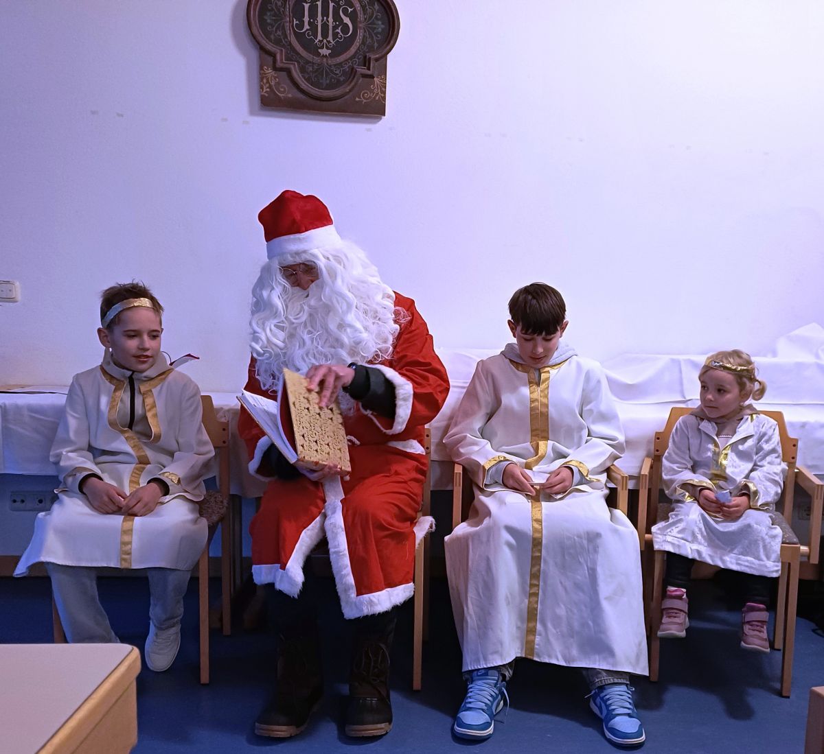Wurde auch heuer wieder sehnlichst erwartet: Der Nikolaus mit seiner kleinen Engelschar.