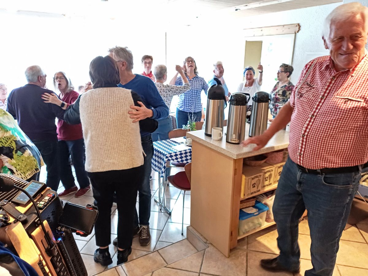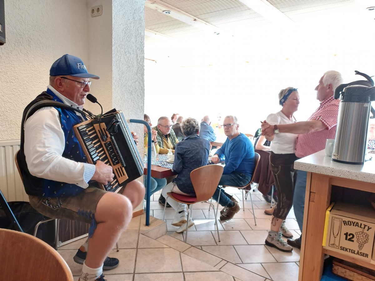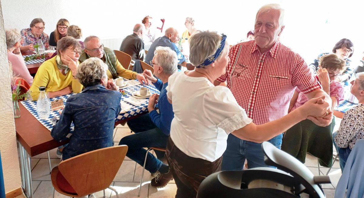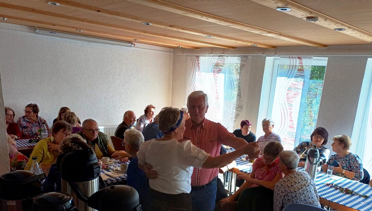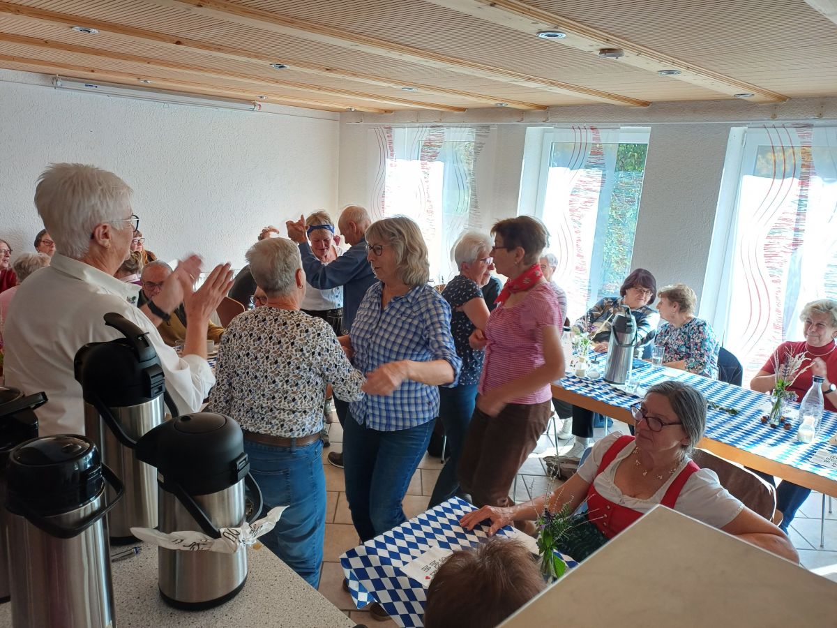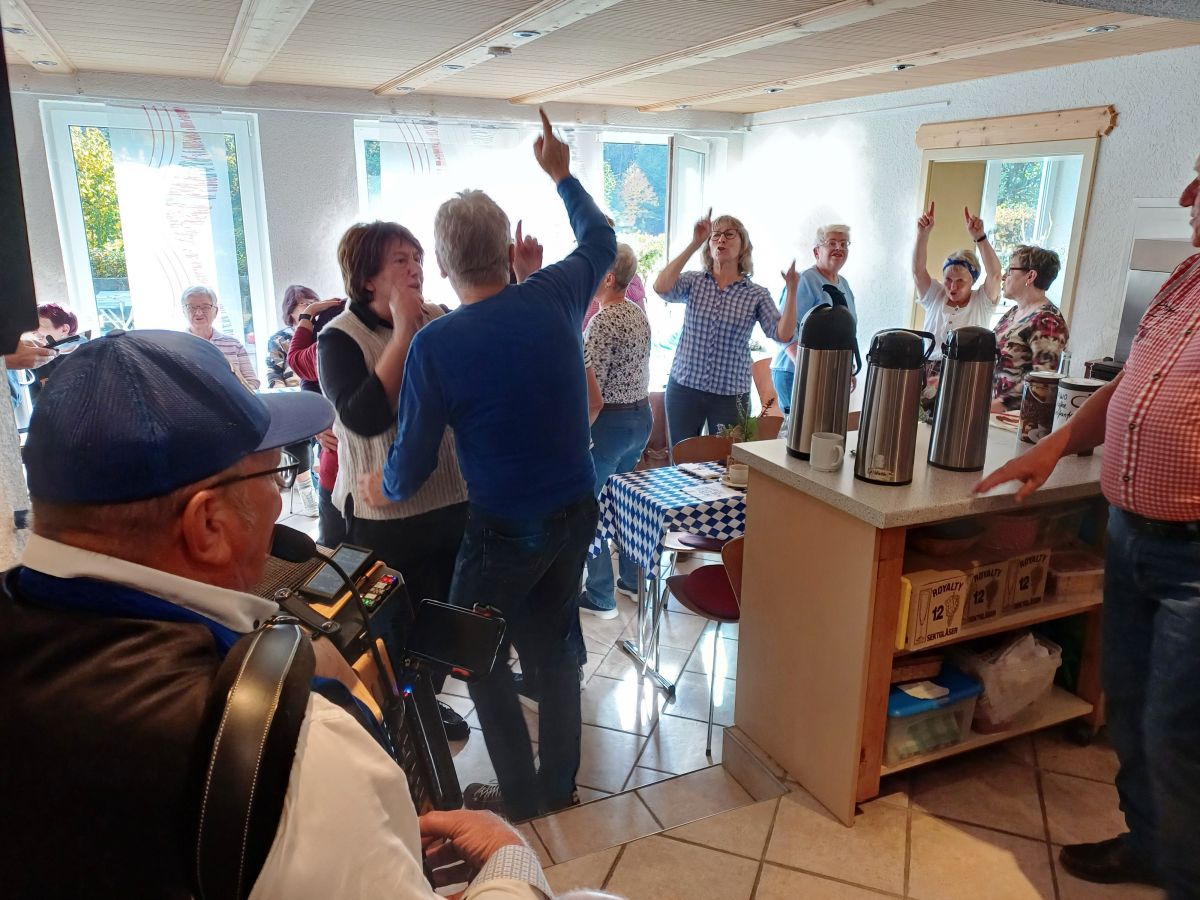 Alleinunterhalter "Floppl" und das Team vom Cafe Treff brachten die 46 Besucher in Feierlaune und wie auf dem Münchner Oktoberfest wurde geschunkelt, gegessen und gelacht. Einige Seniorinnen und Senioren ließen es sich auch nicht nehmen, zu der flotten Musik zu tanzen.
