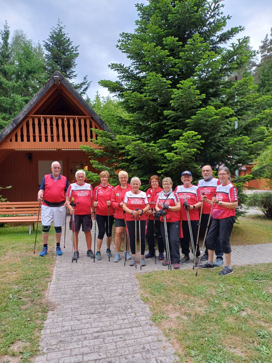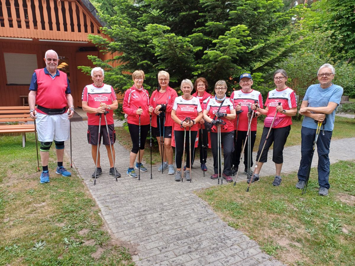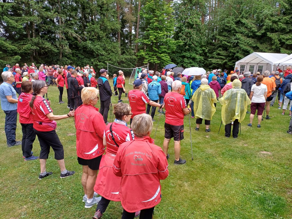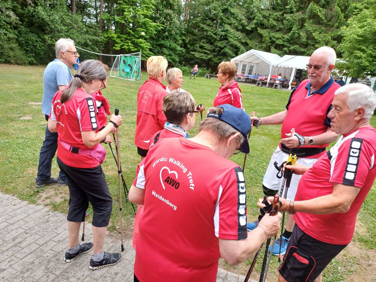 Mit dabei waren auch 11 Nordic Walking Freunde der AWO Weidenberg. Vom Freizeit-gelände des Veranstalters BVS Weiden am Schießlweiher aus führten die Wegstrecken durch ebenes Gelände auf Wald- und Forstwegen rund um das Schießlweiher-Naturschutzgebiet.
