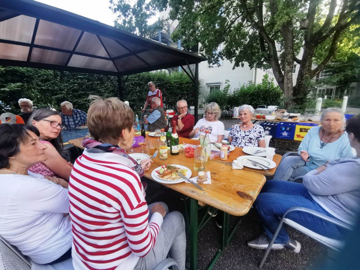 Der AWO Nordic Walking Treff hatte anstatt des wöchentlichen Mittwochtreffs zu einem Grillabend in den Garten des AWO Seniorenzentrums eingeladen. 18 Nordic Freunde verbrachten bei reichlich Gegrilltem, liebevoll selbst zube-reiteten Salaten und kühlen Getränken einen schönen und stimmungsvollen Grillabend.