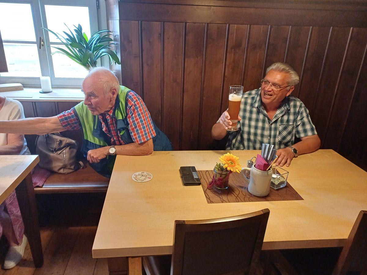 Wir nehmen nun gemeinsam einen Schluck vom Tisch unseres Ehrenmitglieds Georg und singen alle